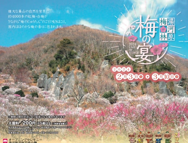 幕山の山肌に咲き誇る4千本の梅の木。